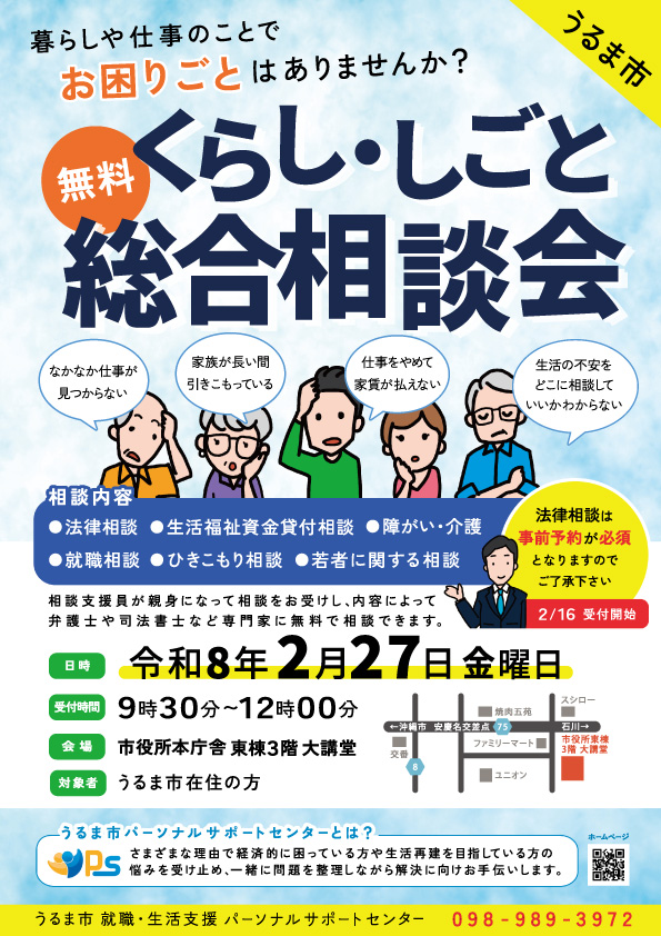 様々な生活の問題を相談支援員が親身になって相談をお受けし、内容によって弁護士や司法書士など専門家に無料で相談できます。